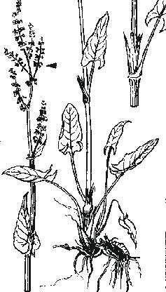 Sauerampfer (im Volksmund Roter Heinrich, Roter Ritter, Ochsenzunge) wächst schon ab Mitte März auf feuchten Wiesen und Weiden. Die Pflanze gehört zu den Knöterichgewächsen, die unscheinbare grüne bis rötliche Blüten besitzen und sich durch eine an der Blattbasis ansitzende, den Stängel umhüllende, zuweilen häutige Röhre (sog. Ochrea) auszeichnen.