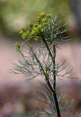Der Dill, auch als Gurkenkraut bekannt, ist einjährig und ein weiterer Vertreter aus der Familie der Doldengewächse. Der charakteristischen Blütendolde verdankt er wohl seinen Namen, denn "Dill" und "Dolde" sollen etymologisch verwandt sein. Dill wächst aufrecht und wird 80 bis 120 cm hoch. Die ganze Pflanze verströmt den typischen stark würzigen Dillgeruch. Er ist seit alter Zeit im Mittelmeerraum aber auch im Norden verbreitet und stammt vermutlich aus dem Vorderen Orient, vielleicht aus Indien. Im Süden wächst er wild als Unkraut in Getreidefeldern. In der Regel ist er in Gartenkultur und selten verwildert anzutreffen. Häufig wird er nicht nur bei uns, sondern auch in England und Nordamerika kultiviert. Wie alle Doldengewächse hat er eine lange Keimdauer, bevorzugt nährstoffhaltige, mit reifem Kompost versorgte Beete, braucht die Sonne und im Wurzelbereich den feuchten Schatten. Er ist hervorragend geeignet für die Mischkultur mit Zwiebeln, Gurken und Salat. Im Blumenbeet farbenprächtigen Stauden wie Stockrose, Alant oder Sonnenblumen unterpflanzt, liefert der Dill mit seiner feingliedrigen, gelbgrün-bläulichen Erscheinung eine angenehme Hintergrundfarbe.