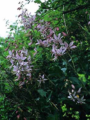 Trauben stehende weiße oder rosa Blüten mit violetter Aderung.