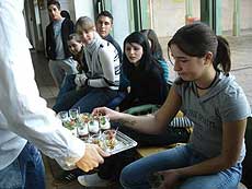 Zum Dank für diese Abgabe haben wir den Leuten aus Nancy, nachdem wir den Sand verarbeitet hatten, beim Erdeschaufeln geholfen. Das ging ungefähr bis 12.30 Uhr. Zu diesem Zeitpunkt haben wir uns, noch dreckiger als am Vormittag, auf den Rückweg zur Rotunde gemacht. Unser Mittagessen haben wir dann im „Casino syndical“ zu uns genommen. Zur Auswahl standen „Nudeln mit Rouladen“ oder „Shrimpsalat“. Nachdem wir uns an dem Essen gütlich getan hatten, ging es dann wieder zurück zu den Rotunden und von dort aus zu unserem Rahmenprogramm in Luxemburg.