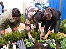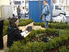 Wieder gab es ein frühes Aufstehen und ein anschließendes Duschen. Danach gingen wir frühstücken und bekamen mitgeteilt, dass wir uns heute die Lunchpakete selber machen mussten, na ja, dachten wir uns, auch gut. Dann, nachdem wir wieder an der Rotunde waren, hat sich unsere Gruppe geteilt. Weil wir mit unserem Garten schon so weit waren, halfen Gereon, Yann, Sabrina, Kyra und Jessica bei den Gärtnern aus Namur aus, die einen riesigen Garten speziell für behinderte und blinde Menschen anlegten, während die Anderen in unserem Garten die restlichen Pflanzen setzten.![]() |