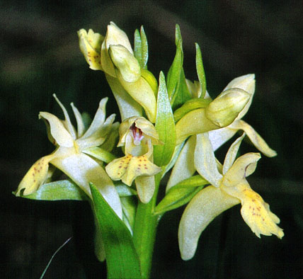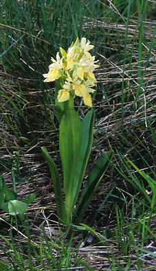 Abb.1: Holunder-Knabenkraut (Dactylorhiza sambucina). Links: rote Form, Mitte: gelbe Form, rechts: Großaufnahme gelbe Form.