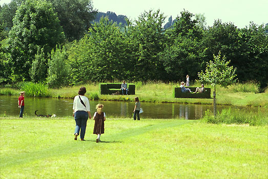 Im Zuge der Projektwoche wurden auch mehrere neue Grassofas gebaut, zwei davon am Teich des geplanten Freilandlabors Wasser.