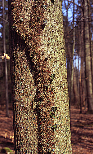 Dicht mit Luftwurzeln besetzter Efeu-Stamm