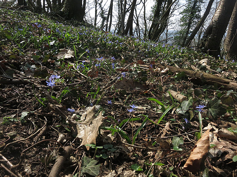 Der Ennert ist ein bewaldeter Bergrücken auf vulkanischem Gestein oberhalb des Rheinufers. Er ist wohl früher als Niederwald bewirtschaftet worden. Deshalb kommt relativ viel Licht auf den Boden, weshalb es hier auch viele Frühjahrsgeophyten gibt. Nach dem sehr kalten Frühjahr 2018 waren gerade mal die ersten Anemonen und Lerchensporrne heraus gekommen. Die botanische Besonderheit ist ein Massenvorkommen des Zweiblättrigen Blausterns (Scilla bifolia). Gleichzeitig ist das das nördlichste Vorkommen dieser wärmeliebenden Art im Rheinland.