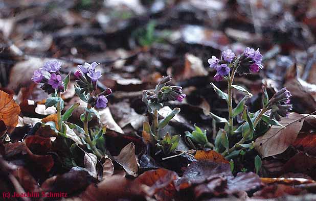 Eine bezeichnende Art ist das Dunkle Lungenkraut (Pulmonaria obscura).