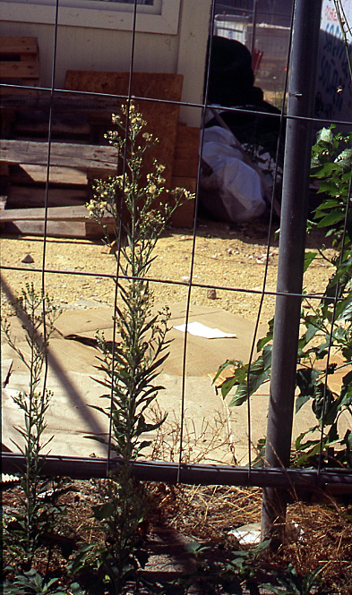 Der weitere Weg führte dann durch die Mefferdatisstraße an die Baustelle des ehemaligen Parkhauses Büchel heran. Hier konnte man imposante Exemplare des Weißen Berufskrauts (Erigeron sumatrensis) bestaunen. An freien Standorten fällt die Art durch ihre schiere Göße auf. Vom allgegenwärtigen Kanadischen Berufkraut (Erigeron canadensis) lässt sie sie am einfachsten anhand der Behaarung der Blätter unterscheiden. Anscheinend ist die Art oft übersehen worden und schon viel weiter verbreitet, als es z.B. die Karte bei foraweb.de wiedergibt.
