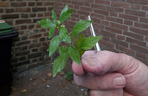 In einer Baumscheibe am Alexianergraben wächst der Zweifelhafte Ziest (Stachys x ambigua, links). Der ist aus der Kreuzung von Wald-Ziest (S. sylvatica) mit dem Sumpf-Ziest (S. palustris) entstanden. Bisher war für Aachen nur ein Fund von BOMBLE aus dem Stadtwald angegeben, wo die Sippe zwischen den Eltern vorkommt. Es handelt sich da offensichtlich um einen Primärbastard. Ganz anders am Alexianergraben. Hier ist weit und breit keine Spur von den Elternarten zu finden. Offensichtlich kann sich die Sippe auch eigenständig ausbreiten und das auch in sehr viel naturferneren Biotopen als die Eltern. Über Annaviertel und Jakobstraße ging es zurück zum Markt. Kurz davor wurde das Mauer-Glaskraut (Parietaria judaica, unten) demonstriert. Dieses Brennnesselgewächs wurde vermutlich von den Römern unbeabsichtigt mit dem Weinbau eingeschleppt und ist an Weinbergsmauern z.B. am Mittelrhein verbreitet. Wie die Art nach Aachen gekommen ist, ist unbekannt. Das Vorkommen existiert jedenfalls schon sehr lange.