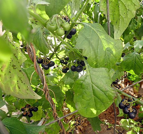 Typisch für solche Stellen ist auch der Schwarze Nachtschatten (Solanum nigrum, unten fruchtend).
