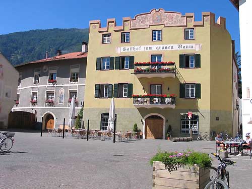 Am Vormittag wurde Glurns besucht. Die Stadt weist noch viele mittelalterliche Gebäude, u.a. auch eine durchgehende Stadtmauerauf, rechts der Marktplatz.
