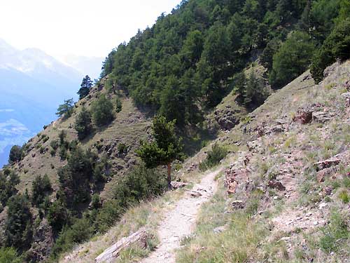 Die letzte Tour führte wieder durch die Hänge des Sonnenbergs von der Seilbahnstation St.Martin am Kofel oberhalb Latsch nach Vetzan zurück. Das Foto oben zeigt nochmal einen typischen Trockenhang.