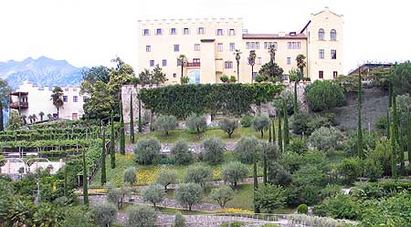 Der Ruhetag am12. Juli wurde mit einem Ausflug nach Meran verbunden. Botanisch bemerkenswert ist hier der neue Botanische Garten um Schloss Trautmannshof (links und unten).
