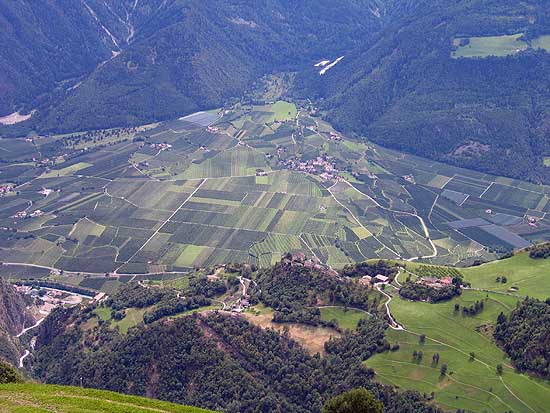 Rechts: Typisch für das Etschtal und seine Seitentäler sind die ziemlich steilen Hänge, die z.T. sogar noch bewirtschaftet werden.