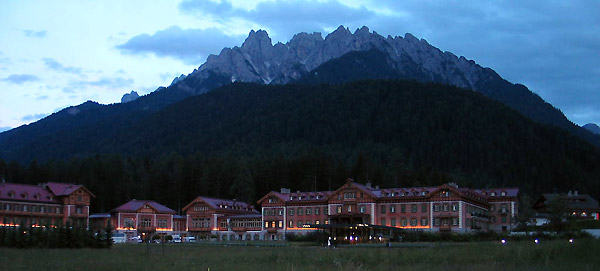 Das traditionelle Abschiedsfoto (ganz rechts mit unserer Wirtin) ist diesmal nicht das letzte Foto. Aus fahrplan- und buchungstechnischen Gründen mussten wir nach einem Tag in Bruneck noch eine Nacht in Toblach verbringen. Unterkunft war die Jugendherberge Toblach, die mit anderen kulturellen Einrichtungen heute im ehemaligen Grand Hotel Toblach untergebracht ist, das 1878 von der Eisenbahngesellschaft erbaut wurde, die auch die Pustertalbahn gebaut hat (Bild unten)