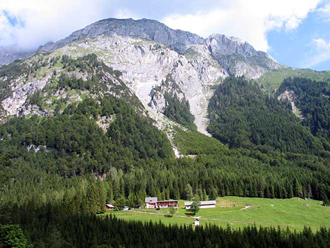 Die diesjährige Alpenexkursion führte in den österreichischen Teil der Karnischen Alpen, die größtenteils zu Italien gehören. Nach einer langen Bahnfahrt kamen wir mit Taxis vom Bahnhof Kötschach-Mauthen zu unserer Unterkunft, der Unteren Valentinalm (oben).