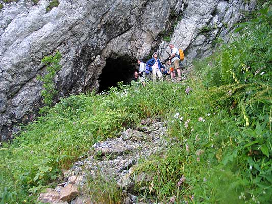 Eine weiterer geobotanische Spezialität ist der Felsen-Storchschnabel (Geranium macrorrhizum), der nur am Plöckenpass von Südosteuropa nach Österreich ausgreift. Wegen eines Gewittereinbruchs endete der Tag dann früher als erwartet im Restaurant auf der Passhöhe. Ein Teil der Gruppe nutzte eine Regenpause, um sich den Stollen an der Cellon-Schulter anzuschauen.