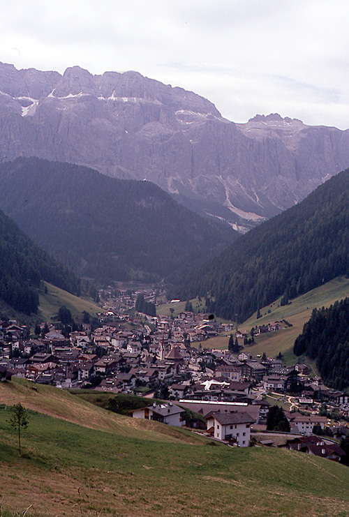 Quartier war diesmal in Wolkenstein, das am Talschluss des Grödnertals, einem Seitental des Eisack, liegt. Der Hausberg ist der Langkofel, der auch im Bildhintergrund zu sehen ist. In Wolkenstein beginnen die Passstraßen über das Grödnerjoch und das Sellajoch, die Ausgangspunkte für einige alpine Touren sind.