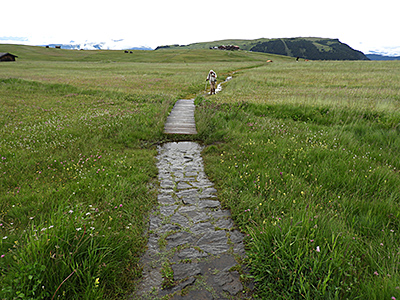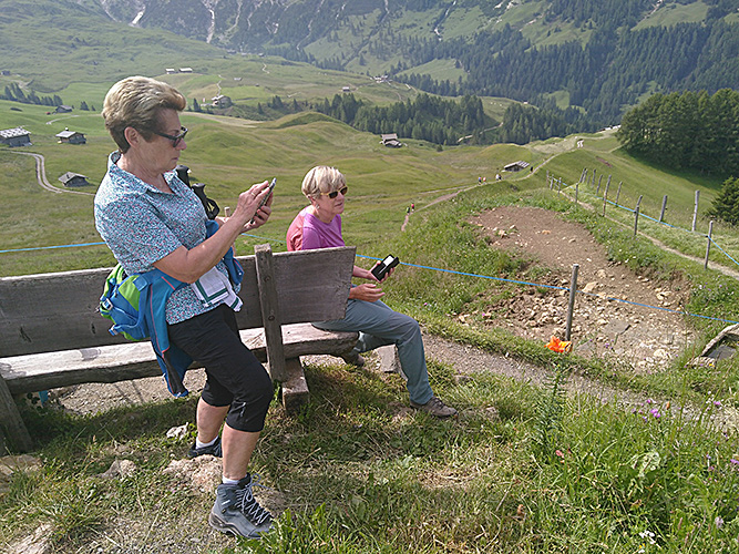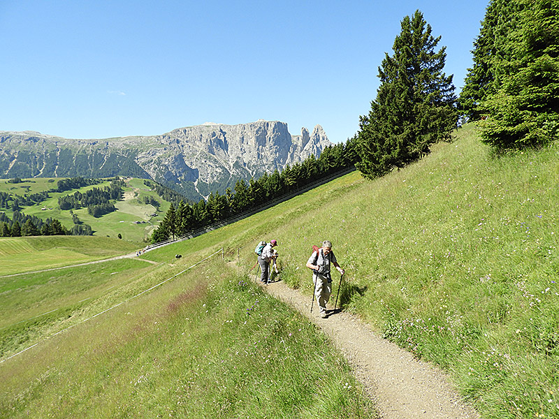 Eine andere Gruppe ging von der Plattkofelhütte über den Friedrich-August-Weg auf der Schneid in Richtung Rosszähne und über die Mahlknechthütte und die Wiesen der Alm zurück nach Compatsch. Wieder andere kamen bis zur Zallinger Hütte.