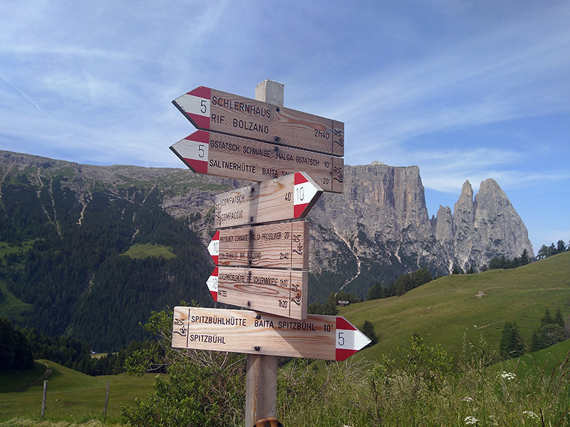 Die Alpenexkursion führte in diesem Jahr auf die Seiser Alm in Südtirol. Quartier bezogen wir im Berghotel Zorzi in Compatsch. Der Ort liegt hinter Kastelruth und Seis auf 1.860 m auf der westlichen Kante der Seiser Alm Hochfläche. Er ist ideal als Ausgangsort für Wanderungen auf der Alm und in die umliegenden Berge.