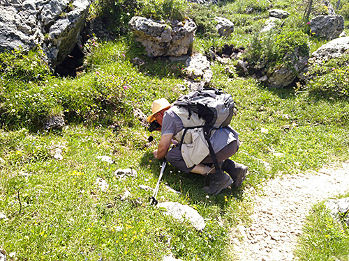 Aufgrund der sauberen Luft und der relativ hohen Feuchtigkeit siedeln sich überall Flechten an. Auf einer Wiese fanden sich noch etliche schöne Exemplare des Deutschen Enzians (Gentianella germanica). Zu Mittag machten wir Rast auf der Contrin Schwaige. Damals gab es an der Stelle nur eine weite Wiese und nichts anderes als eine kleine Scheune. Diese gehörte dem berühmten Bergsteiger und Filmproduzenten Luis Trenker. Dieser übergab die Wiese aus Freundschaft mit dem Großvater Anton, der jahrelang auf seinen Feldern gearbeitet hat, zum Dank der Familie Nogler Kostner.