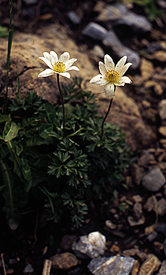 Tiroler Windröschen (Anemone baldensis) (unten links).