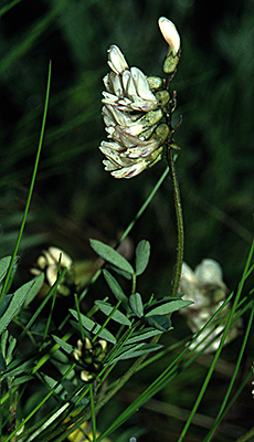 Oben: Das gezähnte Habichtskraut (Hieracium dentatum) ist Charakterart dieses Rasens. Weitere bemerkenswerte Funde sind der Südliche Tragant (Astragalus australis) rechts und der Rasige Klee (Trifolium thalii) unten, der typisch für alpine Weiden ist.