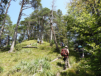 Der Weg führte durch den Wald über den Auerberg und stieg stetig an. Einige Abschnitte führten sehr nah an steilen Felsabbrüchen vorbei.