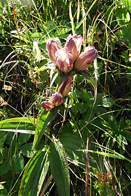 Ähnlich wie bei Unterammergau scheint der Anteil an Silikat im Fels relativ groß zu sein. Jedenfalls gibt es am Laber überraschend viele Säurezeiger. Der spektakulärste ist der Ungarische Enzian (Gentiana pannonica). v
