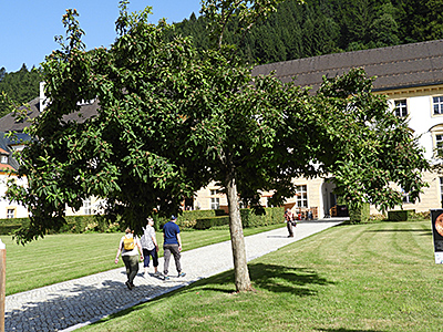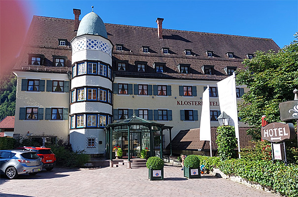 Das Klosterhotel liegt direkt gegenüber der Abtei, wo auch die Haltestelle für den ÖPNV ist. Mit dem kostenlosen Gästeticket waren die TeilnehmerInnen in der Umgebung bis nach Garmisch-Partenkirchen mobil. Wer nicht eh schon ein Deutschlandticket hatte, nutzte diese günstige Gelegenheit.