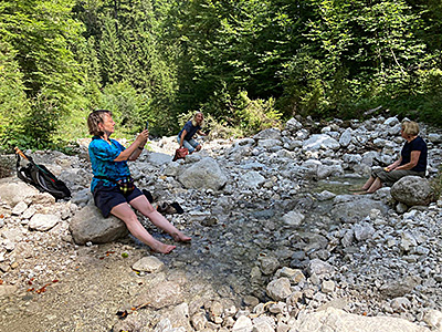 Andere machten eine letzte Wanderung, grüßten die Berge und kühlten die qualmenden Füße im Bach.