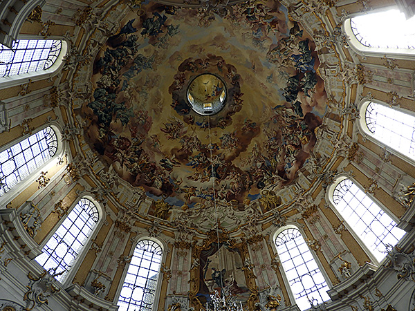 Wasserparterre mit großer FontäneAm Abend gab es im Rahmen der Internationalen Sommerakademie Ettal mit einem Klavierabend das Eröffnungskonzert in der Rosner Aula des Klosters direkt gegenüber dem Hotel. Der Pianist Sandro Nebieridze spielte Werke von Ludwig van Beethoven, Camille Saint-Saëns, Johann Sebastian Bach, Alexander Skrijabin und Igor Strawinsky. Der Abend bot eine breite Palette virtuoser Klaviermusik von klassisch getragen bis feurig modern.