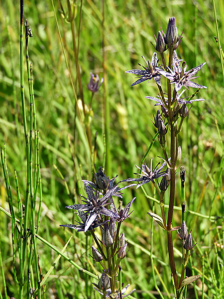Der Blaue Tarant oder Sumpfenzian (Swertia perennis) ist eigentlich eine Art der Kleinseggen-Flachmoore und damit eben auch bezeichnend für die Pfeifengras-Wiese.