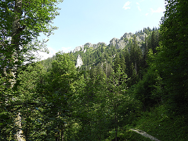 Der Weg führte von Linderhof im Tal durch den Wald nach Graswang.