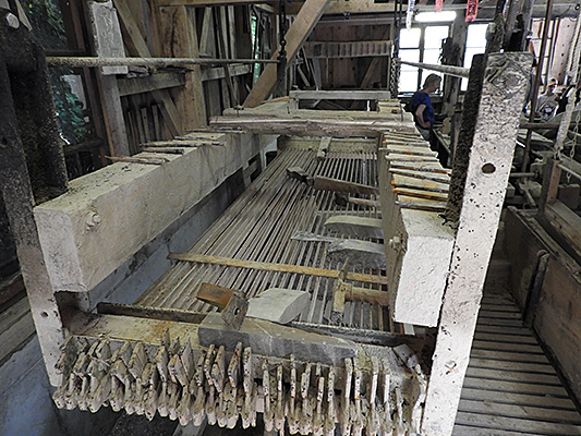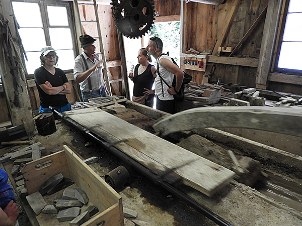 In der Wetzsteinmacherei konnten wir die durch Wasserkraft angetriebenen Steinsägen und Schleifbänke bewundern ebenso wie die Werkstatt für die Feinarbeit.