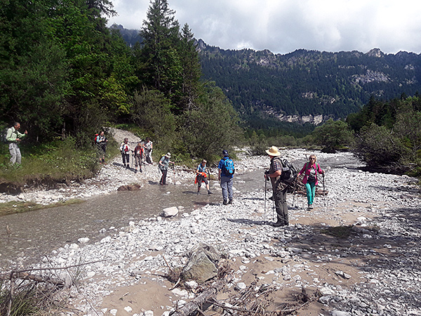 Auf dem Weg nach Graswang kamen wir am Elmaubach vorbei, der als alpiner Wildbach bei Hochwasser das Ufer annagt und durchwateten die Furt des Elmaugrieses.