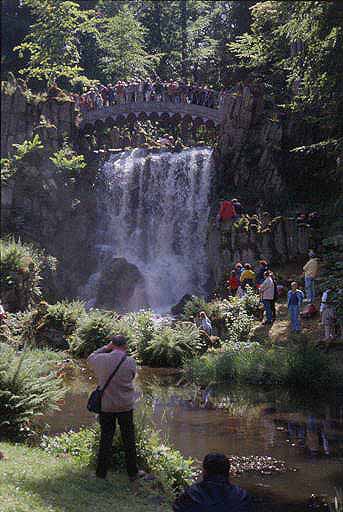 Rechts: Naturszenerie der stimmungsvollen Wasserspiele an der Teufelsbrücke.