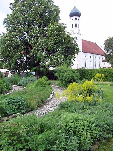 Weiter gings mit dem Besuch beim Zentrum für Umwelt und Kultur am Kloster Benediktbeuren (rechts), die einen sehr schönen Meditationsgarten in Form eines Labyrinths und in einem Garten auch für Blinde eine vorbildliche Kräuterspirale (unten) angelegt haben.