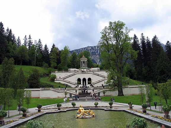 Dann haben wir das Märchenschloss Neuschwanstein (oben) König Ludwigs II. besucht und Linderhof (unten), das Schloss, wo er wirklich gewohnt hat.