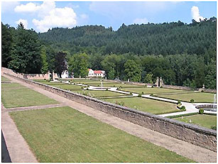 Anschließend das Schloss und den Garten in Weilerbach. Der Garten ist wiederhergestellt worden, lässt aber seine einstige barocke Pracht nur erahnen, da die Parterres lediglich mit Buchsbaum eingefasst und mit Rasen eingesät sind.