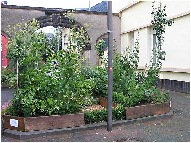 Andere besuchten den Garten im Stadtteil Bonnevoie an der alten Klosterpforte, den wir mit Schülerinnen und Schülern aus der Region Aachen angelegt haben. Der kleine Garten mit Kräutern Karls des Großen ist zwar etwas durchgewachsen und könnte etwas Pflege brauchen, aber er existiert noch als sichtbares Zeichen des Paradiesprojektes im Rahmen der Kulturhauptstadt Europas 2007 in Luxemburg (unten).