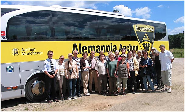 Als „äußerst angenehm“ empfanden alle Teilnehmer der Exkursion den Umstand, dass die ASEAG die Reise mit dem Komfort-Mannschaftsbus der Alemannia durchgeführt hat. Der Bus zog gelegentlich einige interessierte Blicke auf sich, gefolgt von großer Verwunderung, wenn erkannt wurde, wer hier unterwegs war.