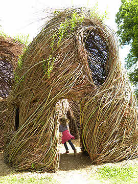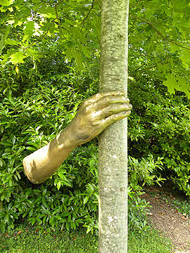 Die hier von links nach rechts abgebildeten und im Landschaftspark platzierten Kunst(pr)o(b)jekte stammen von Dominique Bailly, Giuseppe Penone und Patrick Dougherty.