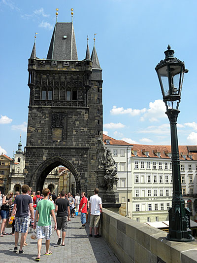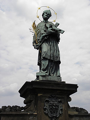 Rechts und unten: Altstädter Turm der Karlsbrücke und die Statue des Hl. Nepomuk