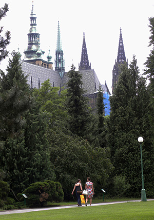 Rechts: Blick vom Belvedere-Garten auf den Veitsdom, der den zweiten Burghof des Hradschin beherrscht