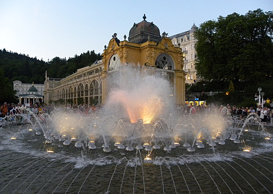 Abendliche Wasserspiele am „Singenden Brunnen“ vor der Neuen Kolonnade