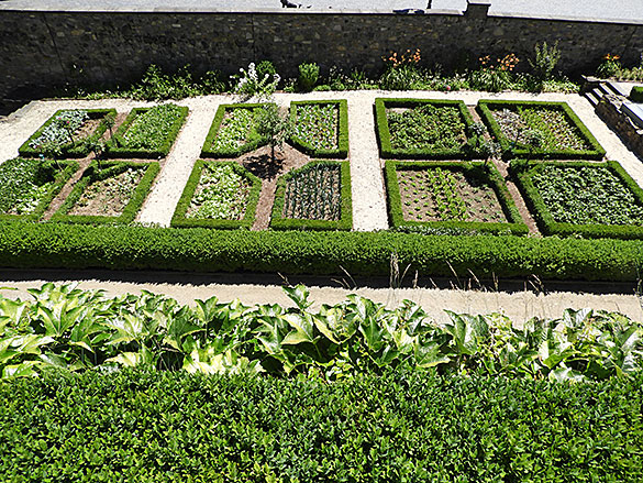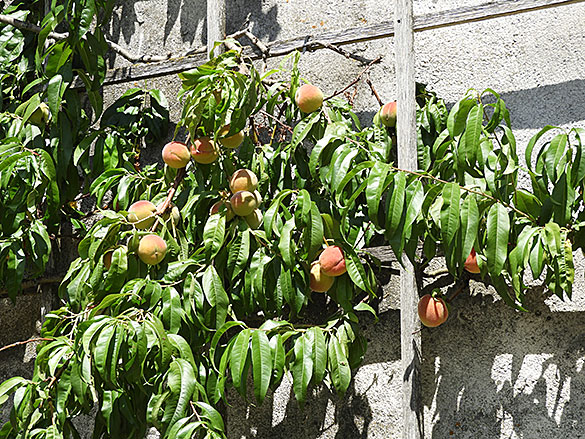 Der Konventgarten ist in insgesamt acht Parterres unterteilt. Entlang der Klostermauer sind Spaliere gepflanzt. Im Bild ein Pfirsichbaum.