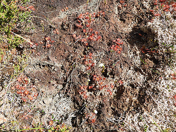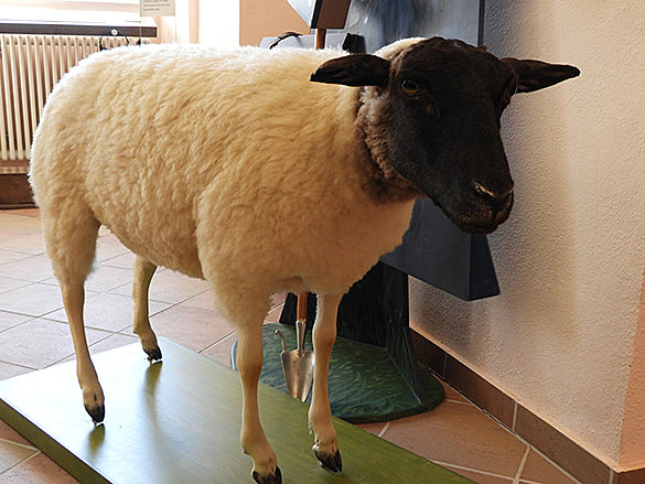 Das Hochmoor liegt auf 800 m ü. NN und erhält normalerweise viel Regen (etwa 1000 l pro Jahr). Wie die torfige Schlenke rechts im Bild mit Sonnentau aber zeigt, war es wegen fehlender Niederschläge in diesem Jahr äußerst trocken. Die Rhön teilen sich Hessen, Thüringen und Bayern. Im Dreiländereck ist seit 1991 ein Teil als UNESCO-Biosphärenreservat ausgewiesen. In Zella-Mehlis statteten wir dem Zentrum des Biosphärenreservats in einem ehemaligen Nonnenkloster einen Besuch ab. Neben vielen Informationen gab es dort auch ein Rhönschaf zu sehen. Diese sind für die Landschaftspflege der Wiesen auf der Rhön sehr nützlich, denn sie beweiden die Flächen, die für eine maschinelle Mahd nicht geeignet sind. Im angeschlossenen Garten, der ehrenamtlich gepflegt wird, fanden wir folgendes Hinweisschild. Ein bekanntes Problem, mit dem wir im Karlsgarten in Aachen auch zu kämpfen haben.