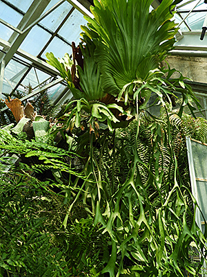 Das sog. Jubiläumsgewächshaus im Botanischen Garten wurde 1983 anlässlich des 200-jährigen Bestehens errichtet. Innen konnte man ein Prachtexemplar des Geweihfarns, Platycerium coronarium, bewundern.
