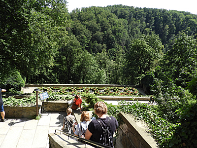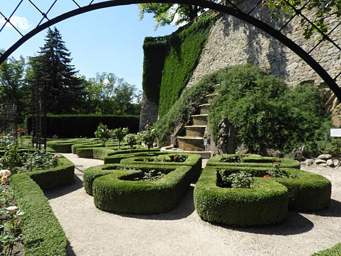 Um das Schloss sind Terrassen angelegt mit verschiedenen, formal gestalteten Gärten.