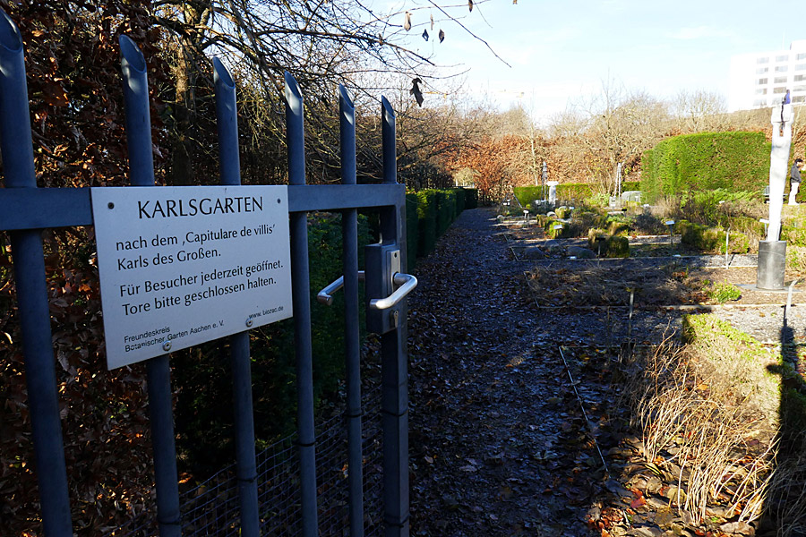Die Karlsskulptur im Hintergrund ist eine Dauerleihgabe des Künstlers Alfred Mevissen und steht schon seit ein paar Jahren im Karlsgarten.